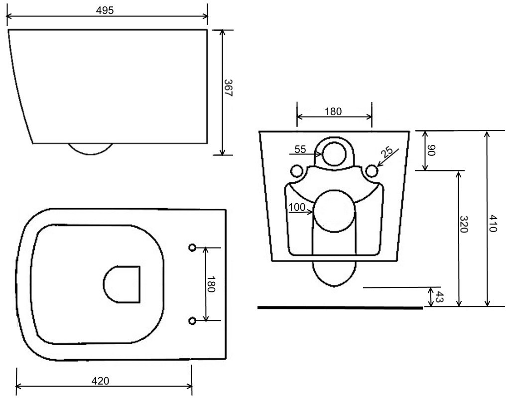 AQVAZONE Wand-Tiefspül-WC AQVA CERAMICA weiß, 495 x 365, 3 l/4,5 l, softedge, spülrandlos