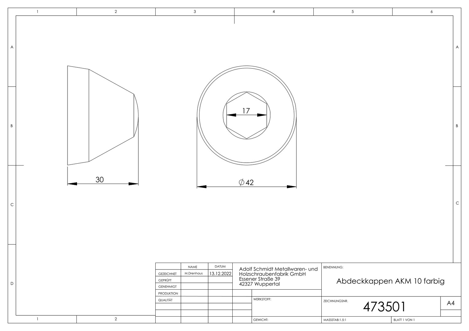 ASW Abdeckkappe AKM 10, farbig, zu Waschtisch-/Urinalbefestigungen