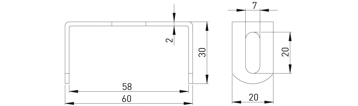 ASW Doppelbügel Länge 60 mm, Höhe 30 mm, Stahl verzinkt, mit Langlochöffnungen