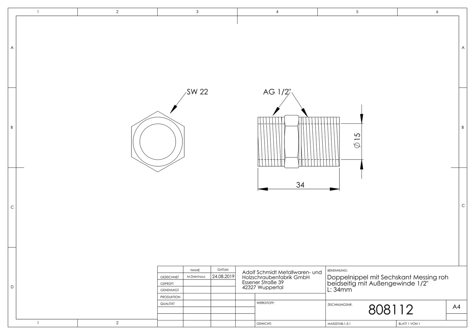 | Werkstoffgüte Anschluss 1 | CuZn39Pb3 (CW617N) |