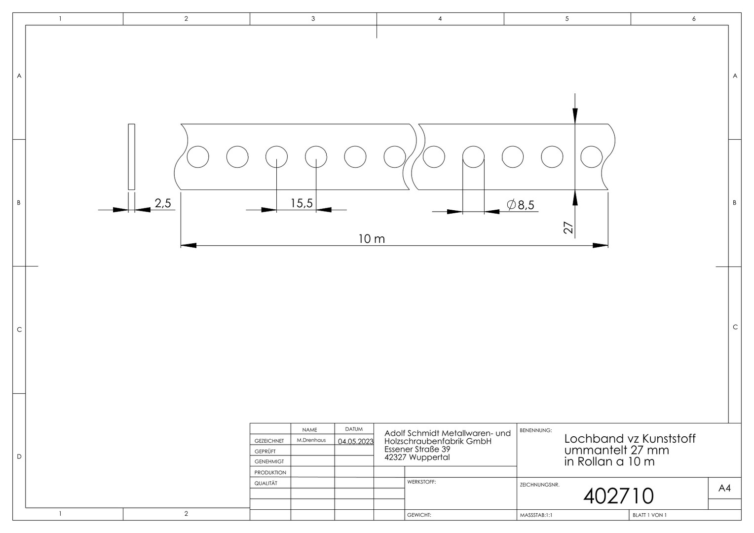 ASW Lochband 27 mm, Kunststoffummantelt, Rolle a 10 m