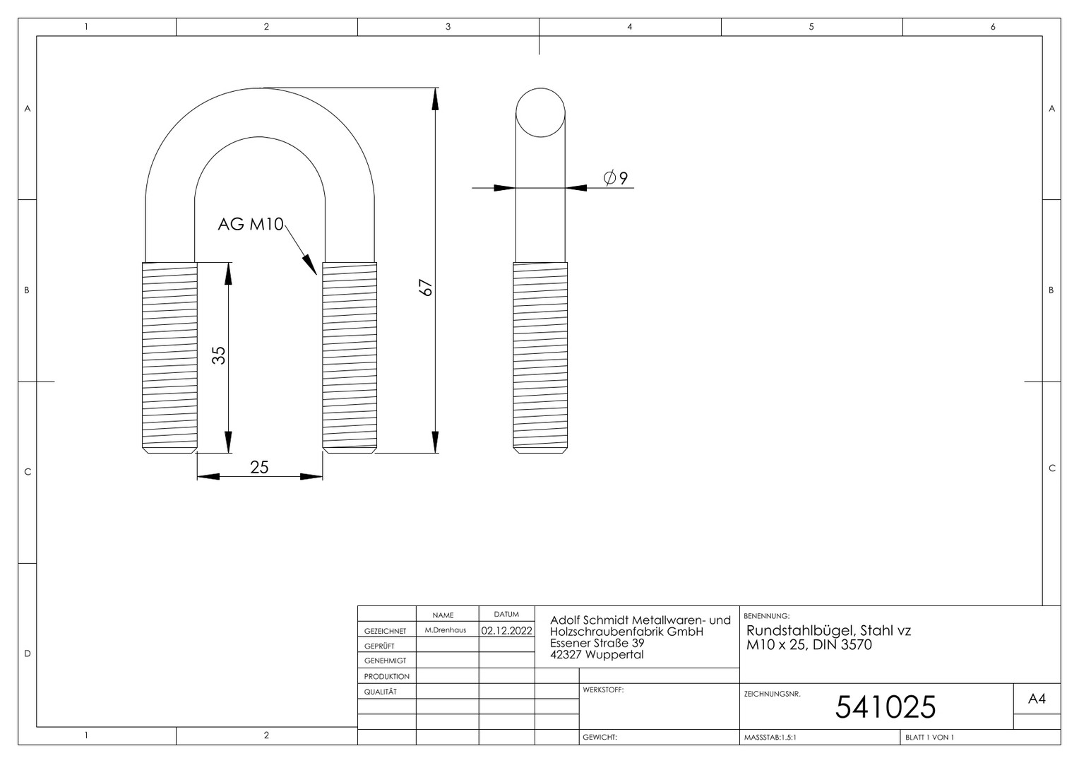ASW Rundbügel M 10 x 25 mm, Stahl verzinkt