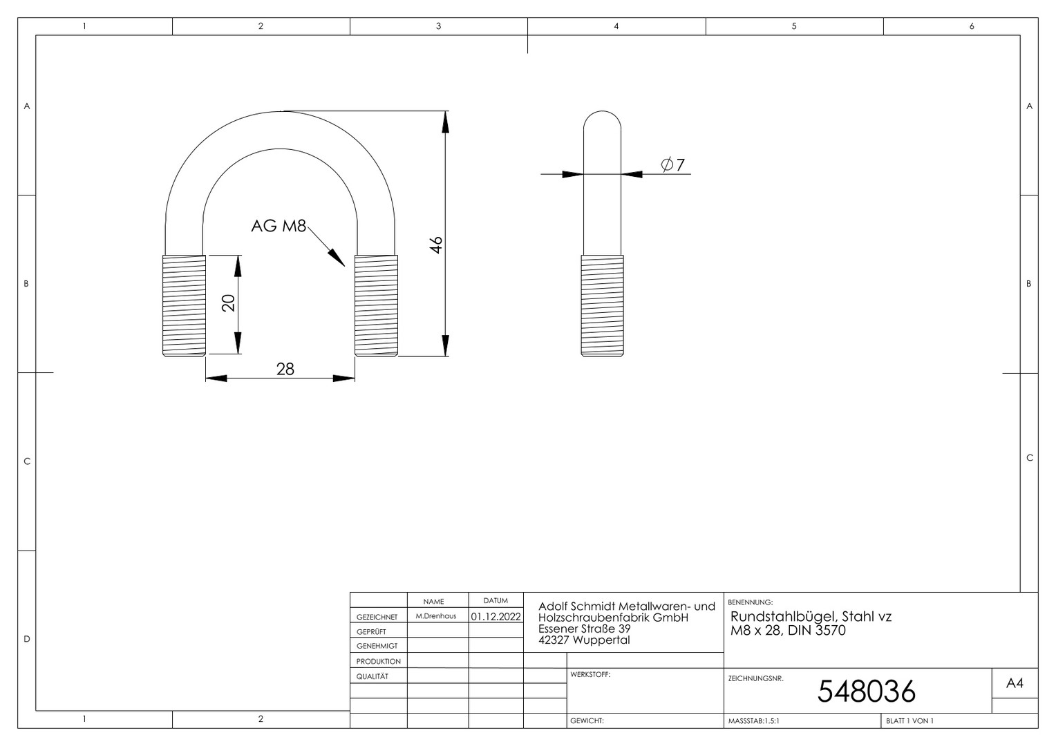 ASW Rundbügel M 8 x 36 mm, Stahl verzinkt