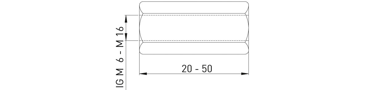 ASW Sechskant-Gewindemuffe M 16 x 40 mm, Stahl verzinkt, mit durchgehendem Gewinde