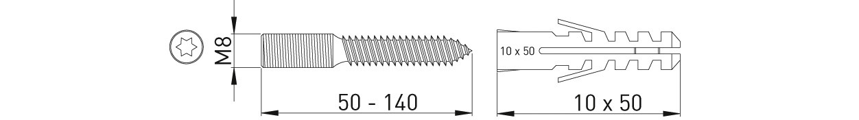 ASW Stockschraube M8 x 140 mm, verzinkt, mit Nylon-Flossendübel 10x50mm