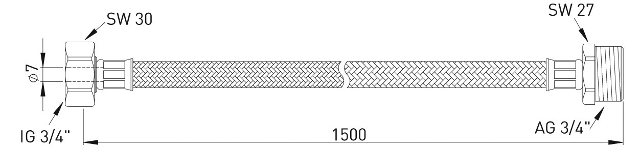 -20°C/+75 °C, einerseits Außengewinde 3/4", andererseits Überwurfmutter IG 3/4"