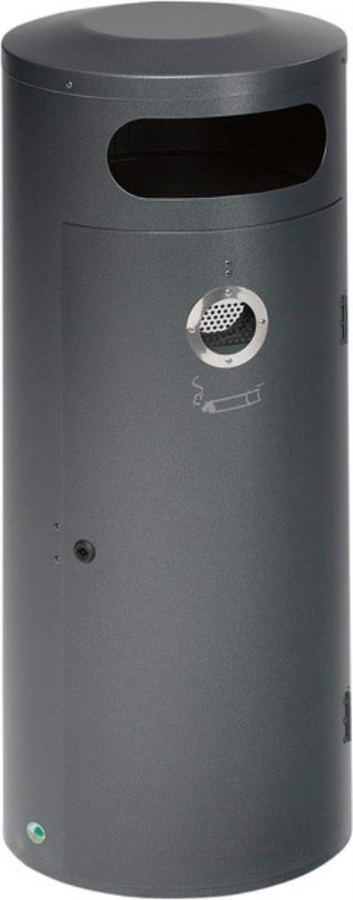 • Eingebauter Ascher innen liegend mit 4,5 l Fassungsvermögen, abnehmbarem Zigaretten-Abstreifblech und außen liegendem Edelstahlring