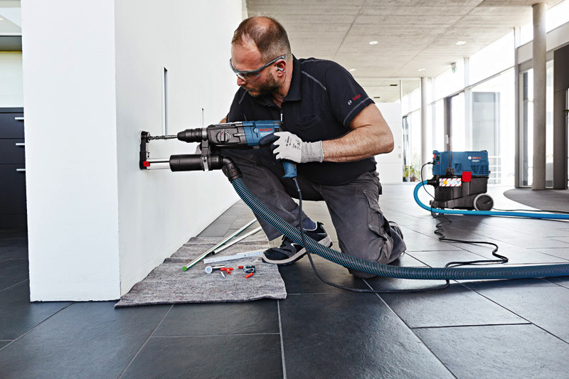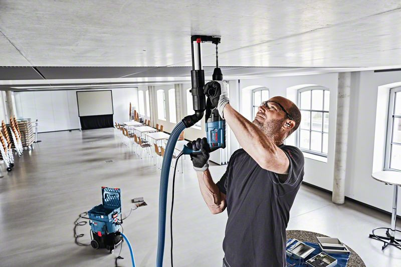 Systemzubehör GDE 16 Plus, Die Staubabsaugung GDE 16 Plus Professional ist Boschs Lösung für nahezu staubfreies Bohren mit SDS plus. Ihre optimierte Form ermöglicht sauberes Arbeiten, reduziert die Reinigungszeiten und erhöht die Sicherheit für den Anwender. Ihr SDS plus System erlaubt eine schnelle und einfache Befestigung an SDS plus Werkzeugen mit nur einem Klick. Außerdem wurde sie für den Einsatz mit dem Bosch Click & Clean System konzipiert, was für äußerst bequeme Verwendung sorgt. Sie ist mit allen 2-kg- und 3-kg-Hämmern von Bosch mit SDS plus System und 50-mm-Schaft kompatibel.