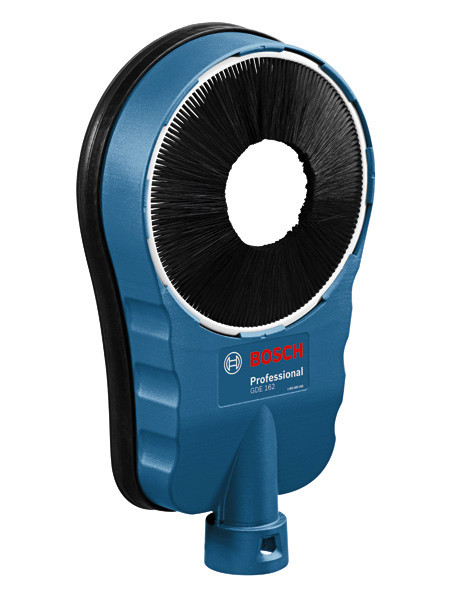 Systemzubehör GDE 162, Die Staubabsaugung GDE 162 Professional ist Boschs praktische und universelle Lösung für Kernbohrungen mit großen Durchmessern bis zu 162 mm. Sie ermöglicht sauberes Arbeiten, reduziert die Reinigungszeiten und erhöht die Sicherheit für den Benutzer. Sie kann schnell und einfach an Wänden befestigt, auf verschiedene Arbeitspositionen eingestellt und auch in nassen Umgebungen verwendet werden – All das sorgt für komfortables und flexibles Arbeiten. Sie wurde für die Verwendung mit dem Bosch Click & Clean System konzipiert.