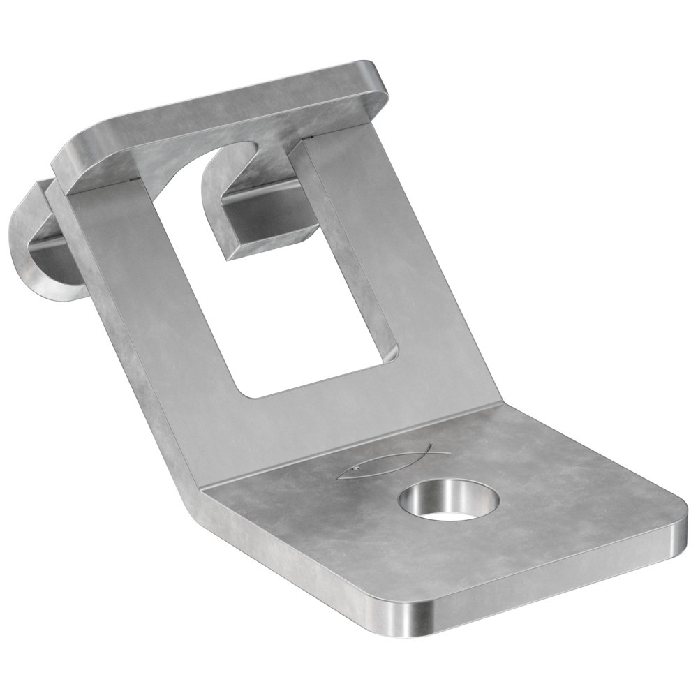 Das fischer Abspannelement FSB 45° ist ein 45°-Element für die Abspannungen der fischer Montageschienen FUS mit Gewindestangen an den Untergrund. Das Abspannelement wird mit einer Schraube M 10 und der Schiebemutter FCN-Clix P 10 an der fischer Montageschiene FUS montiert. Über die Aufnahme des Abspannelements kann die Gewindestange schnell eingesetzt werden. Die Lochung der Grundplatte ermöglicht die Befestigung direkt an Wand oder Decke bzw. auf einer Montageschiene. Die Ausführung mit galvanischer Verzinkung ist für Installationen in Gebäuden geeignet, die Versionen mit feuerverzinkter bzw. Zinklamellen (zl) Oberfläche und aus nicht rostendem Stahl sind für die Installation im Freien und hochkorrosiver Umgebung geeignet.