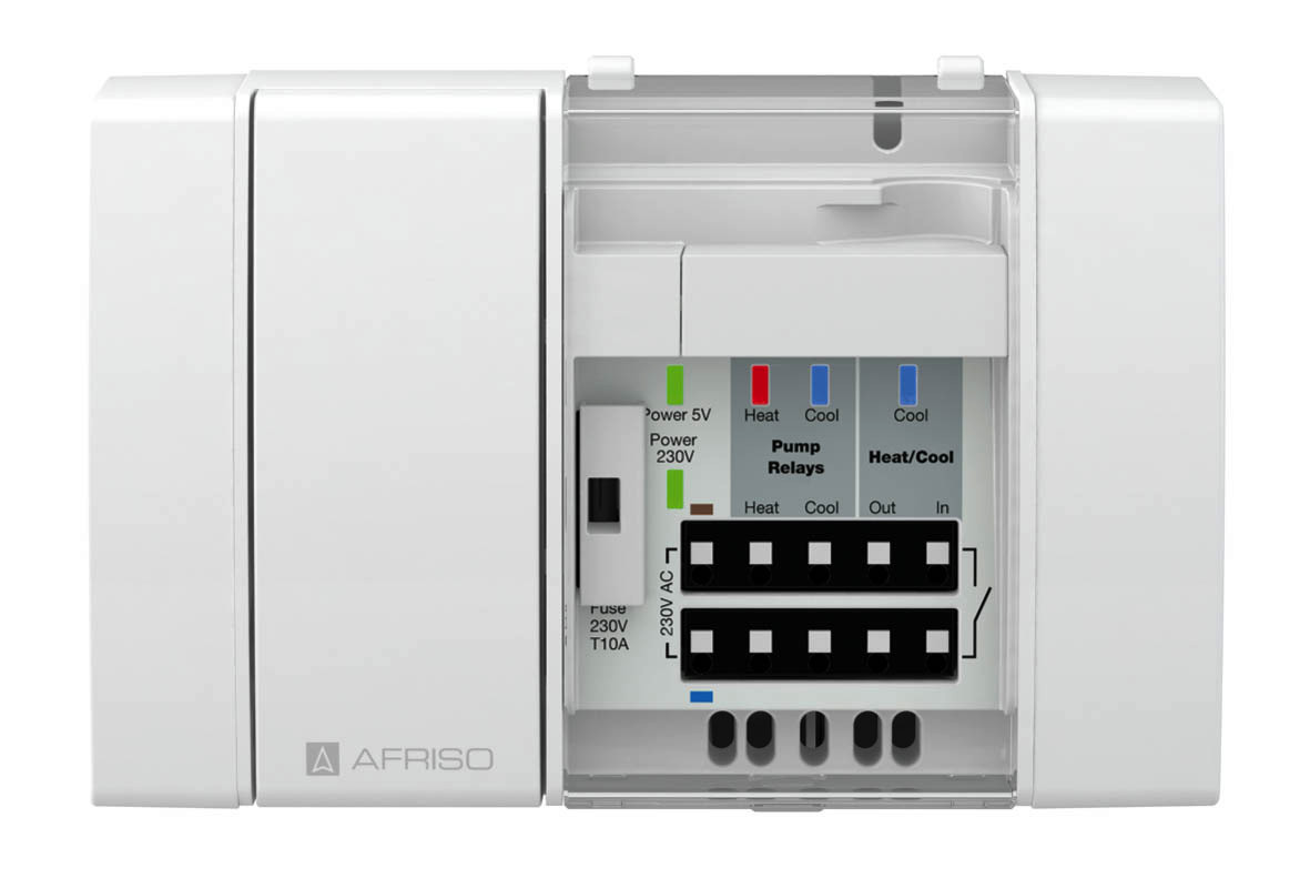 für max. 9 Regelmodule F2 oder 3 Regelmodule F6, Versorgungsspannung AC 230 V, 50-60 Hz, Nennleistung 1 VA, Kunststoffgehäuse aus PC/ABS in hellgrau (ähnlich RAL 7047), 122 x 92 x 45 mm, Schutzart IP 20 (EN 60529), Gewicht 215 g