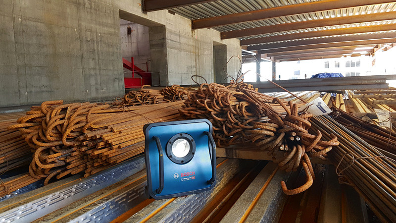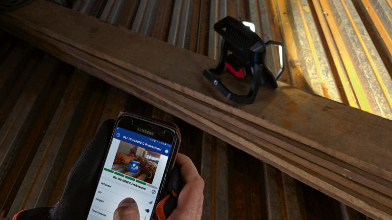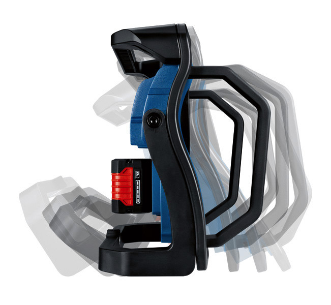 Akku-Bauleuchte GLI 18V-10000 C, Der GLI 18V-10000 C Professional ist der erste Bosch Baustrahler seiner Art im 18V-Sortiment. Die starke LED beeindruckt mit bis zu 10.000 Lumen überlegener Helligkeit, und ist damit sogar heller als Halogenbaustrahler mit 500 W. Der Baustrahler ist aufgrund seines massiven Metallkörpers, der durch einen stoßdämpfenden Gummirahmen und stabile Sicherheitsbügel abgeschirmt ist, extrem robust. Er verfügt sowohl über ein User Interface mit Helligkeits- und Ladezustandsanzeige als auch über ein Bluetooth Connectivity-Modul, das eine bequeme Fernbedienung sowie Beleuchtungseinstellungen über die Kachel MyTools in der Toolbox App ermöglicht. Er hat drei Helligkeitsstufen, flexible Einstellwinkel und ein 5/8"-Stativgewinde, was eine schnelle Anpassung an jede Arbeitssituation ermöglicht. Dieser Baustrahler eignet sich hervorragend zum Ausleuchten ganzer Arbeitsbereiche. Das Gerät ist kompatibel mit allen Bosch Professional 18V-Akkus und -Ladegeräten (Professional 18V System). Auch kompatibel mit AMPShare, der markenübergreifenden Akku-Allianz. Karton