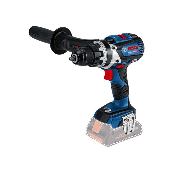 Akku-Bohrschrauber GSR 18V-110 C, Der GSR 18V-110 C Professional ist ein extrem leistungsstarker und robuster Akku-Bohrschrauber aus der 18-Volt-Klasse von Bosch mit bürstenlosem Motor. Sein maximales Drehmoment von 110 Nm und der bürstenlose Motor machen den Bohrschrauber zu einem extrem kraftvollen Elektrowerkzeug. Dank des Vollmetallbohrfutters ist der Bohrschrauber sehr widerstandsfähig und eignet sich auch für den härtesten Einsatz am Arbeitsplatz. Außerdem ist er mit der Bluetooth Connectivity Option ausgestattet und lässt sich für zusätzliche Werkzeugkontrolle direkt an ein Smartphone anschließen. Dieses Elektrowerkzeug wurde zum Bohren in Holz mit einem maximalen Durchmesser von 82 mm, in Stahl bis 13 mm und für Schraubdurchmesser bis 12 mm konzipiert. Das Gerät ist mit allen Bosch Professional 18-Volt-Akkus und -Ladegeräten kompatibel (Professional 18V System). Der GSR 18V-110 C Professional verfügt außerdem über 2 Gänge, Autolock, KickBack Control, Electronic Motor Protection, einen Handgriff, einen Lithium-Ionen-Akku und Präzisionskupplung. Kompatibel mit dem Bosch Professional 18V System und mit der markenübergreifenden AMPShare Akku Allianz. Zusatzhandgriff (1 602 025 07X). Karton