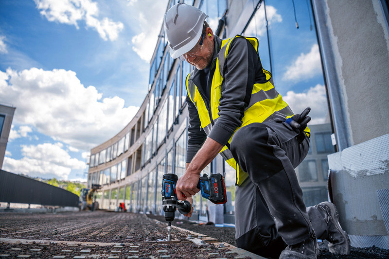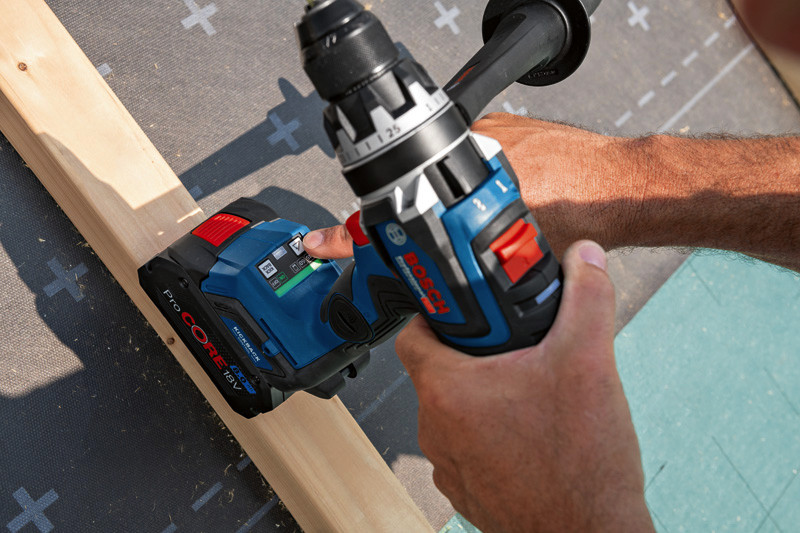 Akku-Bohrschrauber GSR 18V-150 C, Der GSR 18V-150 C Professional ist der clevere Bohrschrauber mit einzigartiger Leistung und Kontrolle für verschiedenste Schraub- und Bohrarbeiten. Er ist die perfekte Wahl für extrem schnellen Arbeitsfortschritt dank außergewöhnlich leistungsstarker ProCORE18V-Akkus und eines bürstenlosen Motors mit BITURBO-Technologie bei einem maximalen Drehmoment von 150 Nm. Die präzise Electronic Angle Detection gewährleistet bei langen Schrauben immer den richtigen Winkel, und die zuschaltbare KickBack Control für die Arbeit mit Lochsägen verringert das Risiko plötzlicher Rotation um die Achse, wenn das Werkzeug verklemmt. Dank Metallbohrfutter und Metallgetriebe ist der Bohrschrauber an jedem Einsatzort extrem zuverlässig und robust. Der GSR 18V-150 C Professional zeigt optimale Ergebnisse beim Schrauben und Bohren in Holz und Metall, besonders beim Bohren großer Durchmesser, z. B. Lochsägen bis 150 mm. Der Bohrschrauber ist kompatibel mit allen Bosch Professional 18V-Akkus und -Ladegeräten (Professional 18V System). für maximale Leistung ProCORE18V ≥ 5,5 Ah verwenden. Auch kompatibel mit AMPShare, der markenübergreifenden Akku-Allianz. Zusatzhandgriff (1 602 025 07Y). 2 x Akku ProCORE18V 8.0Ah (1 600 A01 93N). 1 x Bluetooth Low Energy Modul GCY 42 Professional (1 600 A01 3WF). Schnellladegerät GAL 1880 CV (1 600 A00 B8G). L-BOXX 136 (1 600 A01 2G0). L-BOXX-Einlage für Gerät
