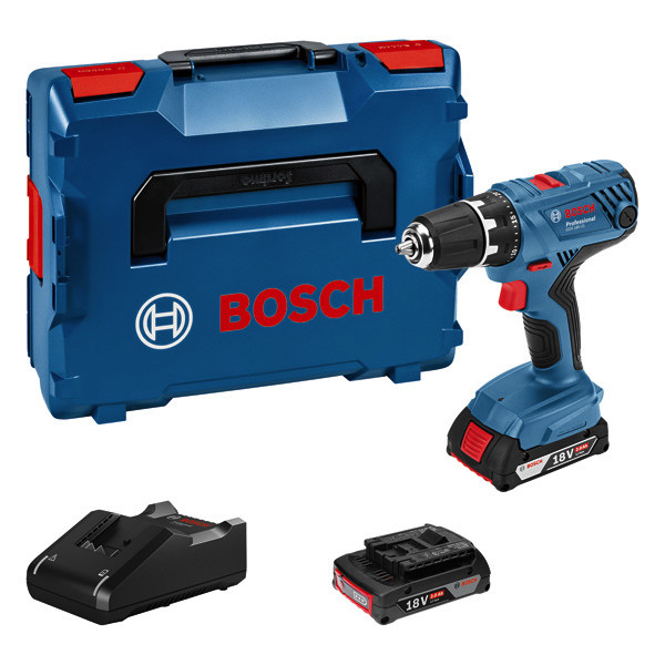 Akku-Bohrschrauber GSR 18V-21, Der Akku-Bohrschrauber GSR 18V-21 Professional ist das zuverlässige Einstiegsgerät aus der 18-Volt-Klasse von Bosch. Sein hartes Drehmoment von 55 Nm liefert die notwendige Leistung für Standard-Bohr- und Bohrschraubanwendungen. Der zuverlässige und langlebige Bohrschrauber bietet dank seines Vollmetallgetriebes und Electronic Cell Protection professionelle Qualität für den täglichen Einsatz. Zusätzlich gewährleistet das professionelle Design mit schlüssellosem 13-mm-Bohrfutter hochwertiges Arbeiten. Dieses Elektrowerkzeug wurde zum Bohren in Holz mit einem maximalen Durchmesser von 35 mm, in Stahl bis 13 mm und für Schraubdurchmesser bis 10 mm konzipiert. Kompatibel mit allen Bosch Professional 18-Volt-Akkus und -Ladegeräten (Professional 18V System). Der GSR 18V-21 Professional verfügt außerdem über 2 Gänge, Autolock, LED-Licht, einen Lithium-Ionen-Akku und Rechts-/Linkslauf. L-BOXX 136 (1 600 A01 2G0). 2 x Akku GBA 18V 2.0Ah (1 600 Z00 036). Schnellladegerät GAL 18V-40 Professional (1 600 A01 9RJ)