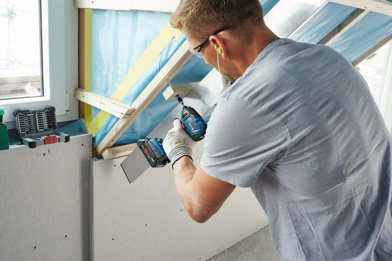 Akku-Drehschlagschrauber GDR 18V-210 C, Der Drehschlagschrauber GDR 18V-210 C Professional mit 1/4"-Sechskant-Bit-Aufnahme liefert eine starke Leistung u.verhindert gleichzeitig Materialschäden. Zwei Standardbetriebsarten am User Interface, Blechschraub