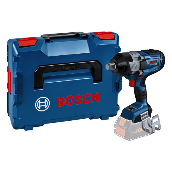 Akku-Drehschlagschrauber GDS 18V-1600 HC, Der GDS 18V-1600 HC Professional ist der außergewöhnlich starke 3/4"-Drehschlagschrauber mit BITURBO Brushless-Technologie für die rauesten, anspruchsvollsten Anwendungen. Der eingebaute bürstenlose Motor kombiniert die Leistung eines kabelgebundenen Werkzeugs mit kabelloser Freiheit und ist optimal abgestimmt auf ProCORE18V-Akkus für ein starkes Anziehmoment von 1.600 Nm und Losbrechmoment von 2.200 Nm. Dank des einstellbaren Modus Auto Bolt Release (ABR) wird vermieden, dass Metallbolzen oder Überwurfmuttern herunterfallen und verloren gehen, was für eine bequeme Handhabung sorgt. Hohe Vielseitigkeit bei der Leistungskontrolle bieten die 3 Geschwindigkeits-/Drehmomentstufen, die eine Anpassung an die jeweiligen Arbeitsanforderungen erlauben. Alle Werkzeugeinstellungen lassen sich bequem über die Bosch Toolbox App ausführen und individuell anpassen. Der außergewöhnlich starke GDS 18V-1600 HC Professional eignet sich für alle Metallanwendungen von M16 bis M33 wie Stahlbau, Rohrmontage sowie Wartung von Industriemaschinen und Baufahrzeugen. Dieser Drehschlagschrauber ist ideal, wenn Höchstleistung zum Entfernen von verrosteten und überstrichenen Bolzen und Überwurfmuttern gebraucht wird. Das Werkzeug ist kompatibel mit allen Akkus und Ladegeräten der AMPShare-Allianz einschließlich aller Akkus und Ladegeräte des Bosch Professional 18V Systems. Für maximale Leistung: ProCORE18V ≥ 5,5 Ah. Der Drehschlagschrauber verfügt über Electronic Cell Protection (ECP), Electronic Motor Protection (EMP), Werkzeugstatusanzeige mit LED-Licht, 3/4"-Werkzeugaufnahme mit Sprengring und Sicherungsbohrung, und einen Aufbewahrungsclip. L-BOXX 136 (1 600 A01 2G0). 1 x Bluetooth Low Energy Modul GCY 42 Professional (1 600 A01 6NH). 1/1 L-BOXX-Einlage für Gerät und Ladegerät (1 600 A02 58Y)
