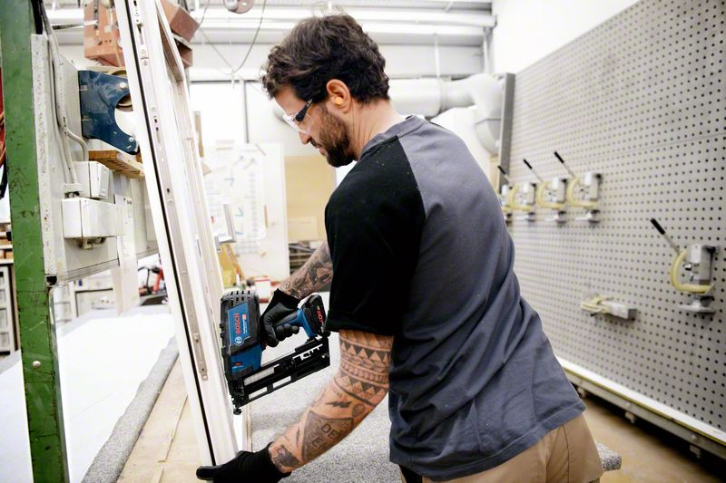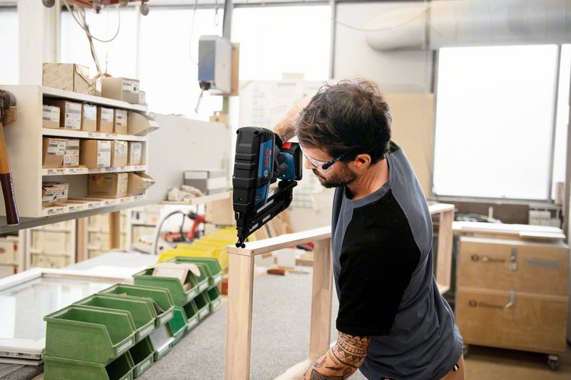 Akku-Holznagler GNH 18V-64, Der Akku-Stauchkopfnagler GNH 18V-64 Professional ist die mobile Lösung f.eine schnelle u.präzise Befestigung von Weichholz, Hartholz oder Verbundmaterial. Dieser Akku-Nagler braucht weder Kompressor u.Luftschlauch, noch