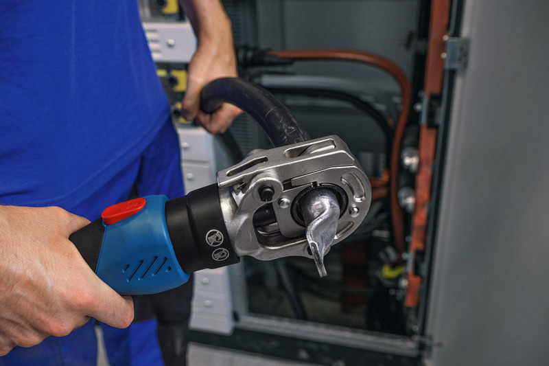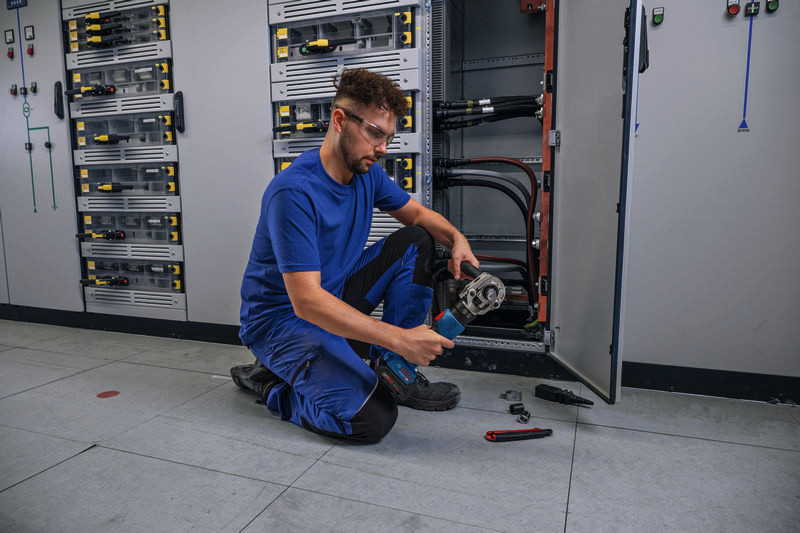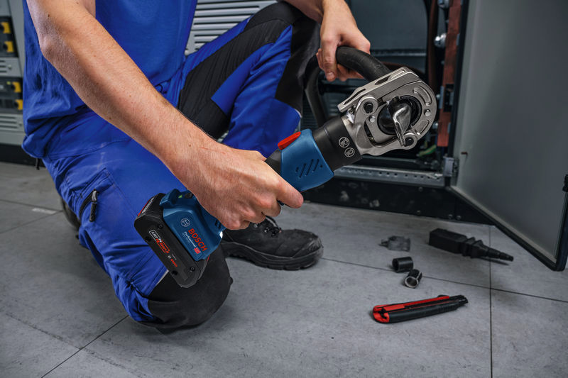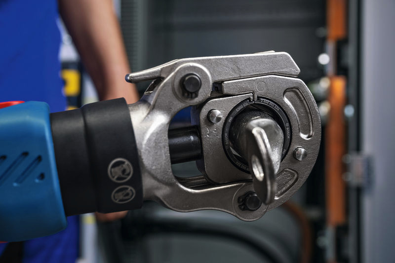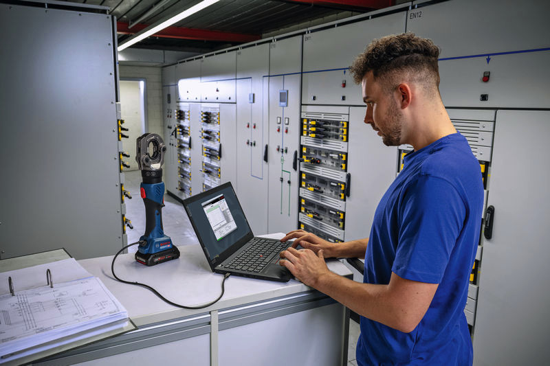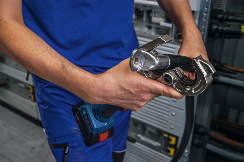 Akku-Hydraulisches Presswerkzeug GPH 18V-60, Wenn Sie Kabelschuhe auf Kupfer- oder Aluminiumkabel verpressen möchten, ist das Presswerkzeug GPH 18V-60 mit dessen konstantem Druck und der sofortigen Rückmeldung die ideale Wahl. Das Werkzeug liefert dank eines elektronischen Drucksensors, der den Druck überwacht, eine zuverlässige und konstante Ausgangskraft von 60 kN. Die Status-LED zeigt den erreichten Zieldruck, den Werkzeugstatus und die Wartung komfortabel an. Mit der manuellen Druckentlastungsfunktion kannst du das Werkzeug jederzeit in die Ausgangsposition zurückfahren. Die GPH 18V-60 eignet sich zum Verpressen von Kabelschuhen auf Kupfer- und Aluminiumkabel bis 300 mm². Die USB-Verbindung und die Auslesesoftware (kostenlos und unten zum Download verfügbar) bieten einen Überblick über die Press-Historie, Fehlermeldungen und den Wartungsbedarf des Werkzeugs. Jedes Werkzeug wird mit einem Zertifikat geliefert, das eine 100-prozentige End-of-Line-Qualitätskontrolle garantiert. XL-BOXX (1 605 438 1JG)
