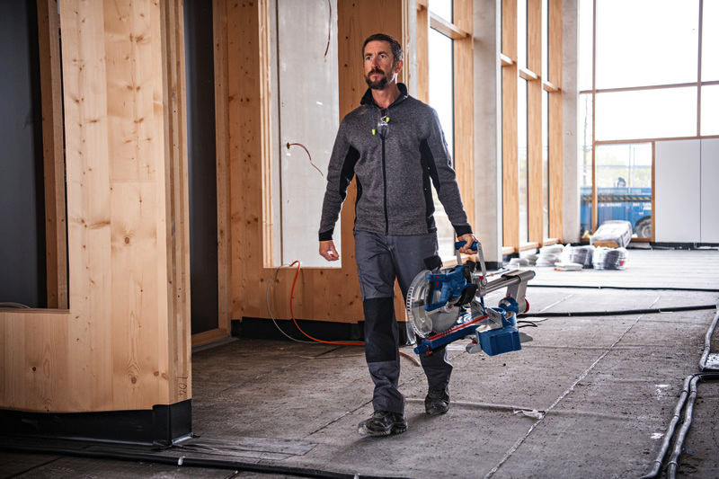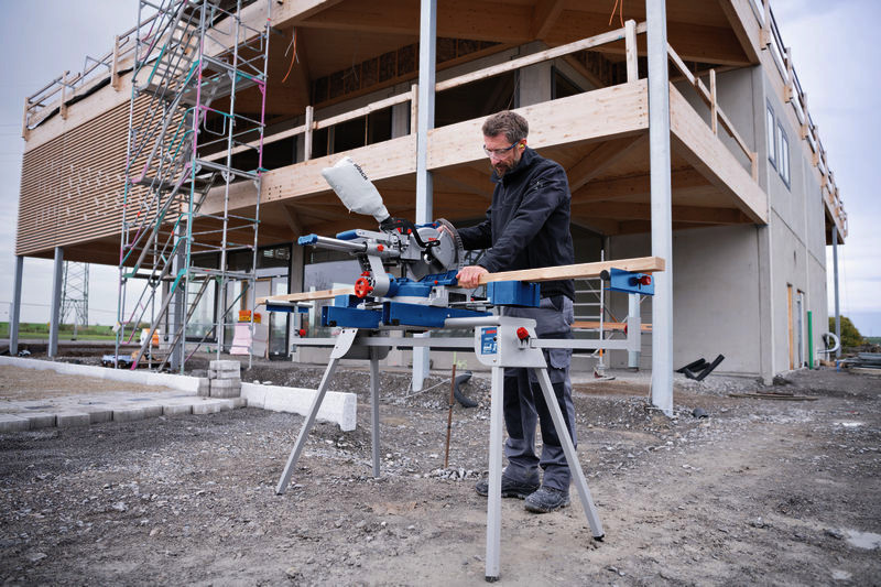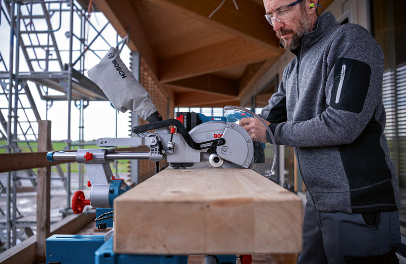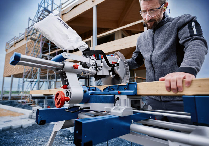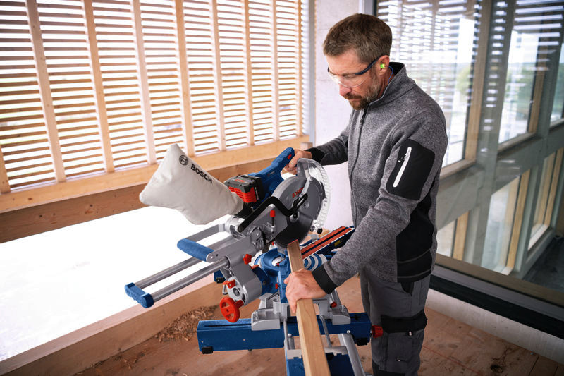 Akku-Kapp- und Gehrungssäge BITURBO GCM 18V-254 D, Der BITURBO Brushless-Antrieb kombiniert mit einem ProCORE18V-Akku sorgen für die starke Schnittleistung der kabellosen GCM 18V-254 D Professional. Die abnehmbaren Werkstückauflagen und langen Tischverlängerungen ermöglichen eine gute Kontrolle langer Materialstücke beim Schneiden mit der Kapp- und Gehrungssäge. Sogar anspruchsvolle Schnitte lassen sich dank der beidseitigen Neigungseinstellung mit Klemmrad für vertikalen Gehrungswinkel mit mehr Komfort und Flexibilität ausführen. Querschnitte, Gehrungsschnitte und Neigungsschnitte in Holz, Aluminium und PVC-Kunststoff sind die idealen Anwendungsbereiche der GCM 18V‐254 D Professional. Er ist mit allen Akkus und Ladegeräten aus dem Bosch Professional 18V System kompatibel. Für maximale Leistung: ProCORE18V ≥ 5,5 Ah. Für eine ausreichende Laufzeit werden 8 Ah oder 12 Ah empfohlen. Sie ist auch kompatibel mit allen Bosch Saugern, GTA-Arbeitstischen und Sägeblättern für Akku-Kapp- und Gehrungssägen. Auch kompatibel mit AMPShare, der markenübergreifenden Akku-Allianz. Die mobile Akku-Kapp- und Gehrungssäge ist leicht, kompakt und durch verschiedene einhändige und beidhändige Trageoptionen gut transportierbar. Dank des Doppellinienlasers mit Laserlinien links und rechts des Sägeblatts ermöglicht sie präzisere Schnitte. 1 x Kreissägeblatt, Standard for Wood, 254 x 30 x 2,2 mm, 48 (2 608 842 239). 2 x Werkstückauflage (flexibel einsteckbar) (1 609 B07 675). Staubbeutel (2 608 000 841). Klemme (1 609 B06 932)