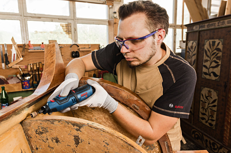 Akku-Rotationswerkzeug GRO 12V-35, Leistungsstark und vielseitig für professionelle Anwendungen, Leistungsstarker Motor mit hoher Drehzahl (bis zu 35.000 min-1) für schnellen Arbeitsfortschritt, Vielfältige professionelle Anwendungsmöglichkeiten wie Schneiden, Schleifen, Fräsen, Polieren und Bohren, besonders an schwer zugänglichen Stellen, Komfortables Arbeiten durch kompakte Bauform, ergonomisches Design und integriertem LED-Licht, 5 x Trennscheibe, 32 mm. Aufspanndorn (2 610 927 731). Zubehör Box. Gehäuseaufsatz (1 619 P11 344). Schlüssel (2 610 930 692). Spannzange (1 619 P11 363). L-BOXX 102 (1 600 A01 2FZ). 1/2 L-BOXX-Einlage für Akku und Ladegerät (1 600 A00 2WV). 1/2 L-BOXX-Einlage für Werkzeug (1 600 A00 2WY)