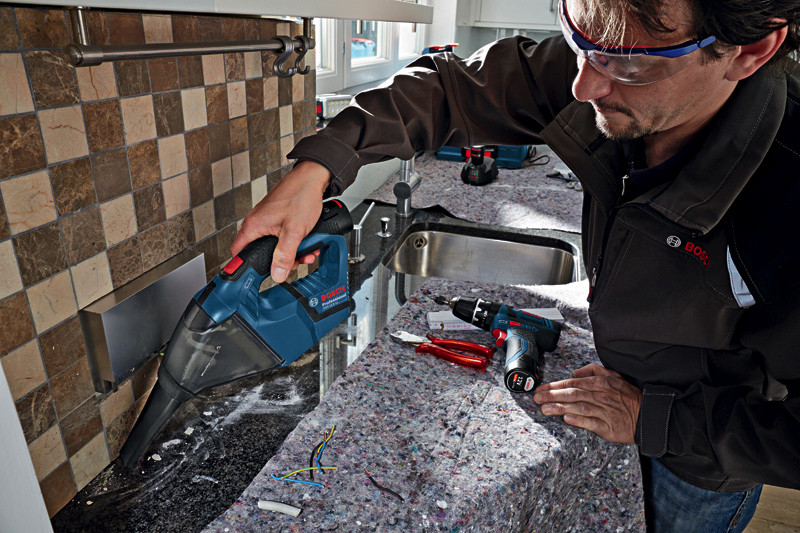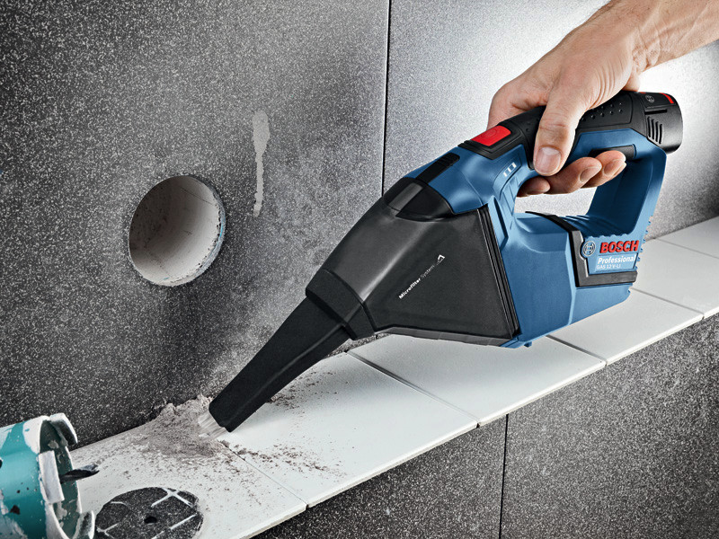 Akku-Sauger GAS 12V, Der GAS 12 V Professional ist Boschs extrem kompakter 12V-Handstaubsauger, ideal zum Trockensaugen. Er bietet kabellose Freiheit beim Reinigen, auch weit entfernt von Steckdosen. Sein extrem kompaktes Design sorgt für uneingeschränkte Beweglichkeit und gutes Handling, er passt für einen bequemen Transport sogar in die kleinste L-BOXX 102. Mit seinem im Lieferumfang enthaltenen Verlängerungsrohr kommt der GAS 12 V Professional problemlos an enge und weiter entfernte Stellen. 1 x Flachfaltenfilter (2 607 432 046). Fugendüse (ET-Nr. 1 600 A00 2PP). Karton