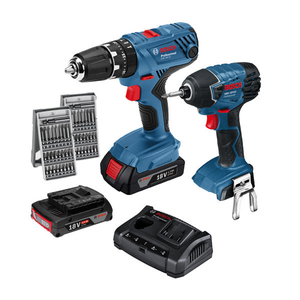 Akku-Schlagbohrschrauber GSB 18V-21, Der Akku-Schlagbohrschrauber GSB 18V-21 Professional ist das zuverlässige Einstiegsgerät mit Schlagbohrfunktion aus der 18-Volt-Klasse von Bosch. Mit einem harten Drehmoment von 55 Nm liefert er die notwendige Leistung für Standard-Bohr- und Bohrschraubanwendungen. Sein Vollmetallgetriebe und Electronic Cell Protection gewährleisten professionelle Qualität für den täglichen Gebrauch und machen den Bohrer ebenso zuverlässig wie langlebig. Zusätzlich unterstützt ein professionelles Design mit 13-mm-Schnellspannbohrfutter hochwertiges Arbeiten. Dieses Elektrowerkzeug wurde zum Bohren in Holz mit einem maximalen Durchmesser von 35 mm, in Stahl bis 13 mm und für Schraubdurchmesser bis 10 mm konzipiert. Die Schlagbohrfunktion ermöglicht darüber hinaus das Arbeiten in Mauerwerk bis 10 mm. Kompatibel mit allen Bosch Professional 18-Volt-Akkus und -Ladegeräten (Professional 18V System). Der GSB 18V-21 Professional verfügt außerdem über 2 Gänge, Autolock, LED-Licht, einen Lithium-Ionen-Akku und Rechts-/Linkslauf. L-BOXX 136 (1 600 A01 2G0). 2 x Akku GBA 18V 2.0Ah (1 600 Z00 036). Schnellladegerät GAL 18V-40 Professional (1 600 A01 9RJ)