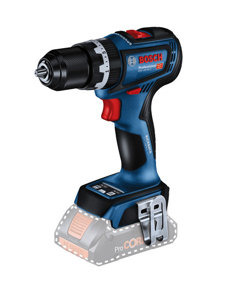 Akku-Schlagbohrschrauber GSB 18V-90 C, Die GSB 18V-90 C Professional ist eine kraftvolle Akku-Schlagbohrmaschine mit einem bürstenlosen Motor, der mit 64 Nm und 2.100 min⁻¹ Höchstleistung liefert. Ihre kompakte Kopflänge von 175 mm sorgt für perfekte Handlichkeit. Das robuste 13-mm-Metallfutter gewährleistet ausgezeichnete Drehmomentübertragung bei jeder Arbeit. Die Schlagbohrmaschine ermöglicht hervorragende Werkzeugkontrolle für mehr Anwender- als auch Werkzeugschutz: Das HMI bietet eine einstellbare KickBack Control-Funktion, die bei einem Verkanten des Werkzeugs und plötzlicher Werkzeugrotation das Rückschlagrisiko reduziert. Die verstellbare Precision Clutch-Funktion verhindert ein Überdrehen nach Erreichen des voreingestellten Drehmoments, und reduziert dadurch Kupplungsverschleiß sowie Geräuschbildung. Dieses Werkzeug wurde zum Bohren in Holz mit einem maximalen Durchmesser von 68 mm sowie in Stahl und Mauerwerk mit jeweils bis 13 mm Durchmesser konzipiert. Der GSB 18V-90 C Professional ist kompatibel mit allen Bosch Professional 18V-Akkus und -Ladegeräten (Professional 18V System). Auch kompatibel mit AMPShare, der markenübergreifenden Akku-Allianz. Kartonschachtel mit Kartoneinsatz