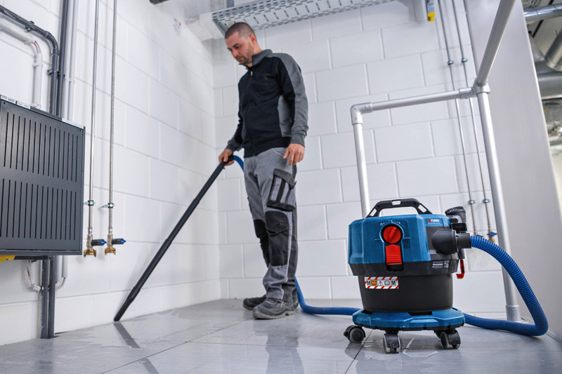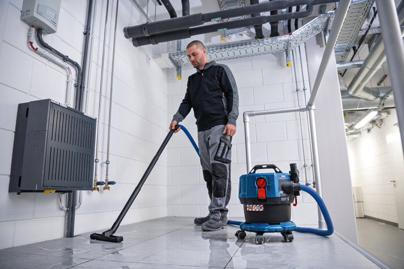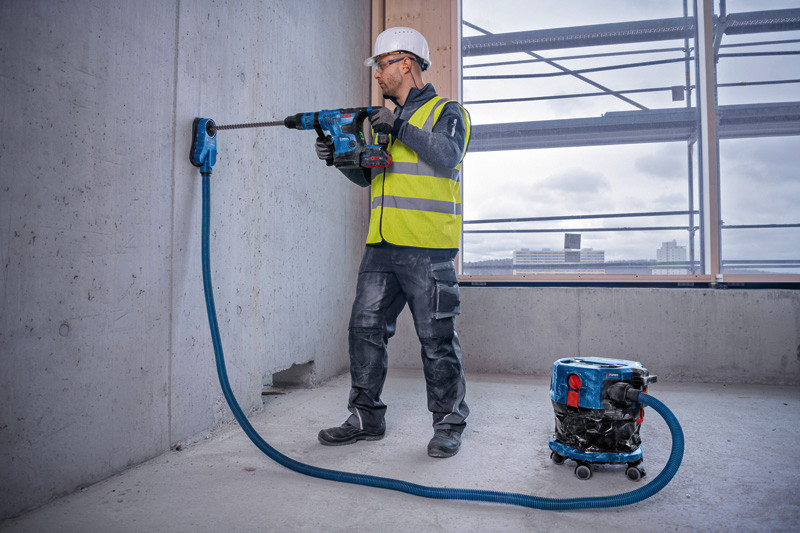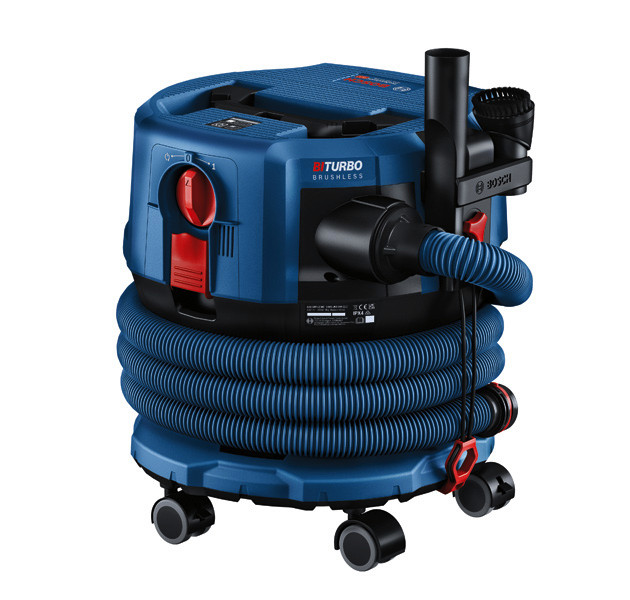 Akku-Staubsauger GAS 18V-12 MC, Der Akku-Sauger GAS 18V-12 MC gewährleistet Staubschutz der Klasse M. Er beseitigt die meisten Staubarten auf der Baustelle – Beton, Ziegel, Spachtelmasse, Fliesenzementkleber und mehr. Die innovative ESD-Lösung leitet automatisch elektrische Ladungen ab, und sein Auto-Start bedient den Sauger für dich, so dass du dich ganz auf deine Arbeit konzentrieren kannst. Befestige einfach das Auto-Start-Modul an deinem Werkzeug und kopple es mit dem GAS 18V-12 MC. Nach dem Koppeln erkennt Auto-Start Vibrationen des laufenden Werkzeugs und schaltet den Sauger für dich automatisch ein und aus. Der leistungsstarke BITURBO Brushless-Motor und der größere Filter sorgen für hervorragende Saugkraft bei allen anspruchsvollen Arbeiten – und das alles mit nur einem 18V-Akku. Kompatibel mit dem Bosch Professional 18V System und mit der markenübergreifenden AMPShare Akku Allianz. Für eine lange Lebensdauer von Filter und Sauger wird die halbautomatische Filterreinigung jedesmal aktiviert, wenn du die Akku-Abdeckung schließt. Das kompakte und leichte Design sorgt für Mobilität am Arbeitsort: Der Sauger lässt sich mühelos tragen, aufhängen und rollen. Er wird mit einem 3,2 m langem, antistatischen Schlauch mit Click & Clean-Adapter geliefert, damit du jeden Arbeitsbereich erreichst. 3-m-Schlauch, antistatisch (2 608 000 772). HEPA-Filter, M-Klasse (2 608 000 771). Tragegurt (1 607 000 F3J). Einwegbeutel (2 608 000 773). Bürste (2 608 000 770). Krümmer (2 608 000 769). Fugendüse (2 608 000 768). Düsenadapter (2 608 000 585). 3 x flexibles Gummiband (1 600 A03 0F0). GCT 30-42 (1 600 A02 GG1)