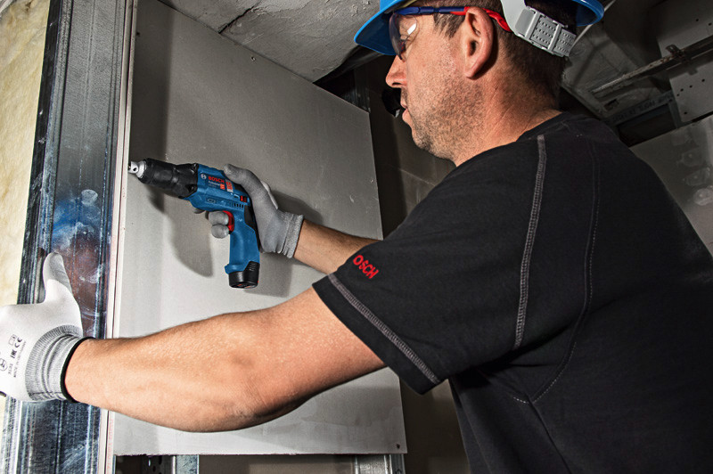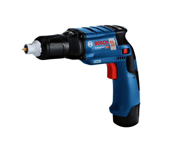 Akku-Trockenbauschrauber GTB 12V-11, Der GTB 12V-11 Professional ist ein kompakter Akku-Trockenbauschrauber für gelegentliche Trockenbauanwendungen im 12-Volt-Segment. Er zeichnet sich durch ein kompaktes und leichtes Design mit 0,9 kg Gewicht und einer Akkukapazität von 2,5 Ah aus und besitzt einen ergonomischen Griffumfang für komfortable Handhabung auch in beengten Arbeitsbereichen. Ferner verfügt er über einen leistungsstarken und kompakten 12-Volt-Antriebsstrang, mit dem bis zu 1.200 Schrauben pro Akkuladung (2,5 Ah) befestigt werden können. Für eine lange Lebensdauer wurde dieser Trockenbauschrauber mit der bürstenlosen Bosch Motortechnologie mit Electronic Motor Protection und Motorbremse ausgestattet. Dieses Elektrowerkzeug ist für die Befestigung von Trockenbauschrauben in Materialien wie Holz und Metall vorgesehen und wurde für das Verschrauben von Gipskartonplatten optimiert. Ist kompatibel mit allen Bosch Professional 12V-Akkus und -Ladegeräten (Professional 12V System) und mit dem MA 55 Professional Magazinaufsatz für Bosch Trockenbauschrauber. Der GTB 12V-11 Professional verfügt über Boschs bürstenlose Motortechnologie mit Electronic Motor Protection und einer Motorbremse. Er besitzt Autolock, einen austauschbaren Tiefenanschlag, Rechts-/Links-Lauf und Drehzahlvorwahl. L-BOXX 102 (1 600 A01 2FZ). 1 x Schraubendrehereinsatz (Bit) Ph 2. 1/2 L-BOXX-Einlage für Ladegerät und Akku. 1/2 L-BOXX-Einlage für Gerät (1 600 A00 3RB)