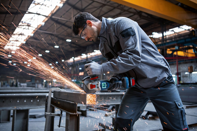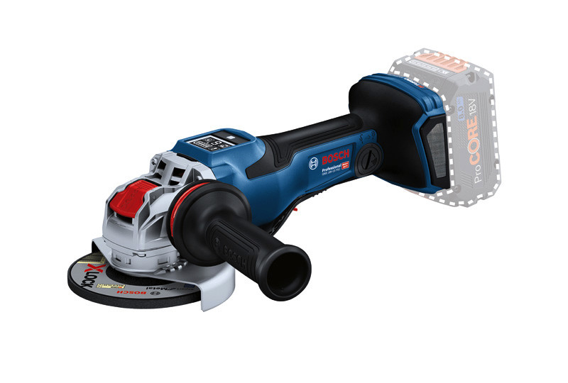 Akku-Winkelschleifer BITURBO mit X-LOCK GWX 18V-15 PSC, Brauchst du bei deiner Arbeit die Freiheit eines Akku-Geräts aber die Leistung eines kabelgebundenen Geräts? Unser kraftvoller GWX 18V-15 PSC Professional mit BITURBO Brushless Technologie liefert erstklassige, kabellose Leistung entsprechend einem kabelgebundenen 1.500-W-Gerät. Sein PROtection-Schalter stellt sicher, dass das Werkzeug sofort abschaltet, wenn es losgelassen wird. Die superschnelle X-Brake bringt die Scheibe sofort zum Stillstand, damit du das Werkzeug unbesorgt ablegen kannst. Das Werkzeug verfügt über ein User Interface, das dir Rückmeldung zum Status des Werkzeugs während des Betriebs gibt, und das standardmäßig die Einstellung von 3 verschiedenen Drehzahlstufen erlaubt. Darüber hinaus kann der Schleifer optional mit einem Bluetooth Connectivity-Modul nachgerüstet werden. Dies erlaubt die Einstellung von bis zu 6 individuellen Drehzahlstufen über die Bosch Toolbox App. Der Winkelschleifer ist außerdem mit KickBack Control, Drop Control, Sanftanlauf und Vibration Control ausgestattet. Er ist deal zum Schleifen von Metall und Schweißnähten sowie zum Trennen von Metall, Beton, Ziegel und Fliesen. Für eine staubarme Arbeitsumgebung den GWX 18V-15 PSC Professional in Kombination mit der Absaughaube GDE 125 EA-T Professional oder GDE 115/125 FC-T Professional verwenden. Kompatibel mit dem Bosch Professional 18V System und mit der markenübergreifenden AMPShare Akku-Allianz. Für maximale Leistung einen ProCORE18V ≥ 5,5 Ah verwenden. L-BOXX 136 (1 600 A01 2G0). Zusatzhandgriff Vibration Control (2 608 900 000). Schutzhaube (1 605 510 365). Anklippbare Trennschutzhaube aus Metall (2 608 000 756)