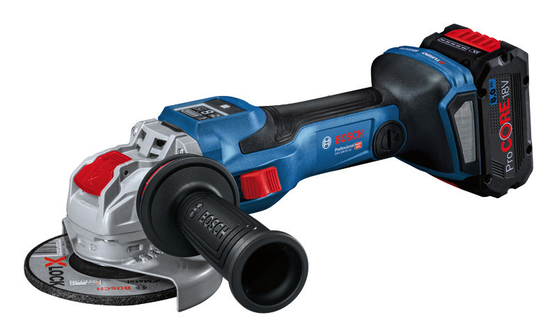 Akku-Winkelschleifer BITURBO mit X-LOCK GWX 18V-15 SC, Brauchst du bei deiner Arbeit die Freiheit eines Akku-Geräts aber die Leistung eines kabelgebundenen Geräts? Unser kraftvoller GWX 18V-15 SC Professional mit BITURBO Brushless Technologie liefert erstklassige, kabellose Leistung entsprechend einem kabelgebundenen 1.500-W-Gerät. Seine superschnelle X-Brake bringt die Scheibe sofort zum Stillstand, damit du das Werkzeug unbesorgt ablegen kannst. Das Werkzeug verfügt über ein User Interface, das dir Rückmeldung zum Status des Werkzeugs während des Betriebs gibt, und das standardmäßig die Einstellung von 3 verschiedenen Drehzahlstufen erlaubt. Darüber hinaus kann der Schleifer optional mit einem Bluetooth Connectivity-Modul nachgerüstet werden. Dies erlaubt die Einstellung von bis zu 6 individuellen Drehzahlstufen über die Bosch Toolbox App. Der Winkelschleifer ist außerdem mit X-LOCK, KickBack Control, Drop Control, Sanftanlauf und Vibration Control ausgestattet. Er ist deal zum Schleifen von Metall und Schweißnähten sowie zum Trennen von Metall, Beton, Ziegel und Fliesen. Für eine staubarme Arbeitsumgebung den GWX 18V-15 SC Professional in Kombination mit der Absaughaube GDE 125 EA-T Professional oder GDE 115/125 FC-T Professional verwenden. Kompatibel mit dem Bosch Professional 18V System und mit der markenübergreifenden AMPShare Akku-Allianz. Für maximale Leistung einen ProCORE18V ≥ 5,5 Ah verwenden. Schutzhaube (1 605 510 365). Zusatzhandgriff Vibration Control (2 602 025 171). L-BOXX 136 (1 600 A01 2G0). 1/1 L-BOXX-Einlage für Gerät und Ladegerät (1 600 A01 166)