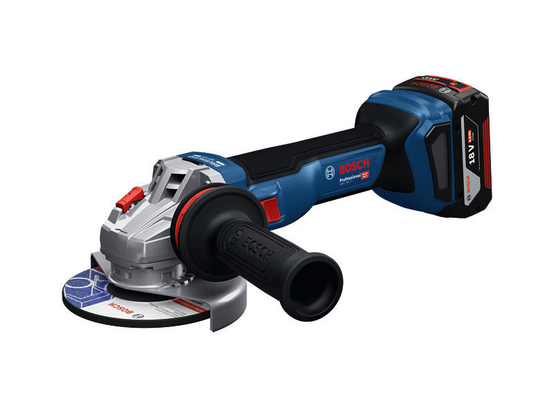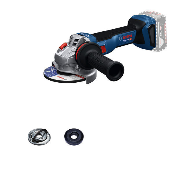 Akku-Winkelschleifer GWS 18V-11, Dieser Winkelschleifer wurde für eine Vielzahl von leichten bis mittelschweren Trenn- und Schleifaufgaben entwickelt und ist ein vielseitiger Allrounder, der für Wartungs- und Reparaturarbeiten sowie für Installationsarbeiten auf der Baustelle geeignet ist. Mit der Leistung eines 1100-Watt-Kabelgeräts und optimierter Überlastkapazität erweist er sich in Industriejobs wie dem Entgraten, dem Entfernen von Rost oder der Wartung und Reparatur von Leitungen als ausgesprochen langlebig. Während der Arbeit sorgen der Anti-Vibrationshandgriff und ein schlankerer, längerer Griff für mehr Komfort und weniger Ermüdung, während zahlreiche Sicherheitsmerkmale das Verletzungsrisiko senken. Dieser Winkelschleifer ist eine ausgezeichnete Wahl für Wartung und Reparatur sowie für Installationsarbeiten auf der Baustelle und ermöglicht eine Vielzahl von Anwendungen wie leichte bis mittelschwere Trenn- und Schleifarbeiten wie das Entgraten oder die Wartung und Reparatur von Leitungen. Schutzhaube (1 605 510 365). Schnellspannmutter (2 608 000 684). Aufnahmeflansch (1 605 703 099). Zusatzhandgriff Vibration Control (2 608 900 000)