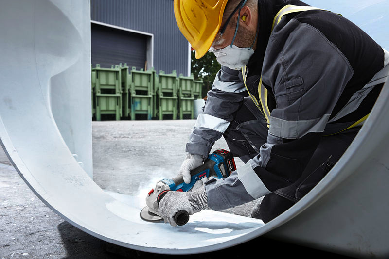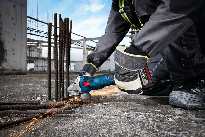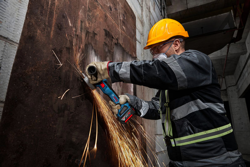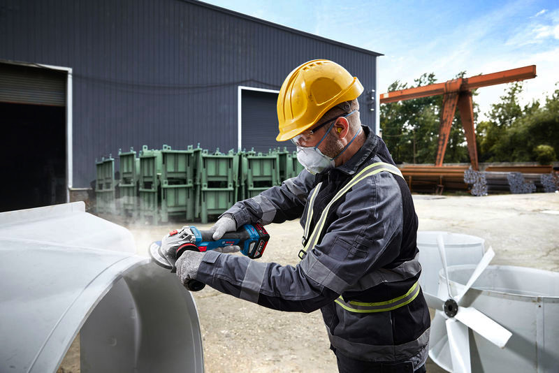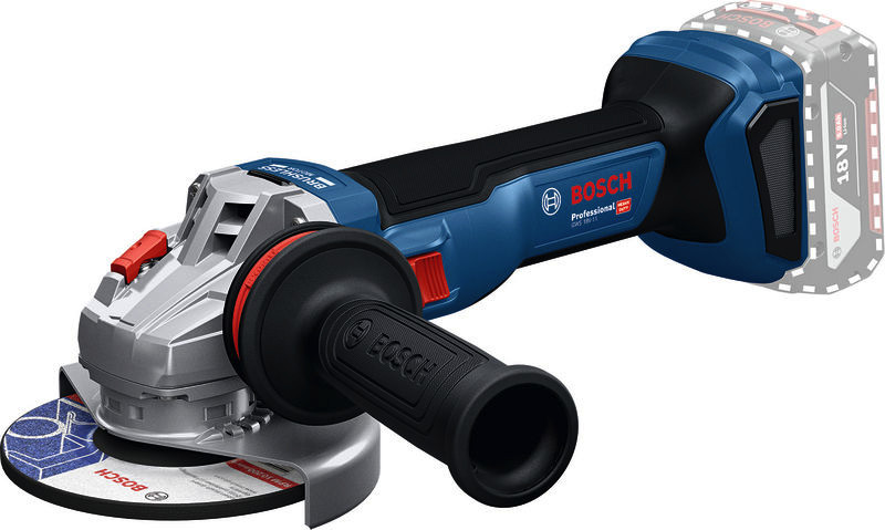 Akku-Winkelschleifer GWS 18V-11, Dieser Winkelschleifer wurde für eine Vielzahl von leichten bis mittelschweren Trenn- und Schleifaufgaben entwickelt und ist ein vielseitiger Allrounder, der für Wartungs- und Reparaturarbeiten sowie für Installationsarbeiten auf der Baustelle geeignet ist. Mit der Leistung eines 1100-Watt-Kabelgeräts und optimierter Überlastkapazität erweist er sich in Industriejobs wie dem Entgraten, dem Entfernen von Rost oder der Wartung und Reparatur von Leitungen als ausgesprochen langlebig. Während der Arbeit sorgen der Anti-Vibrationshandgriff und ein schlankerer, längerer Griff für mehr Komfort und weniger Ermüdung, während zahlreiche Sicherheitsmerkmale das Verletzungsrisiko senken. Dieser Winkelschleifer ist eine ausgezeichnete Wahl für Wartung und Reparatur sowie für Installationsarbeiten auf der Baustelle und ermöglicht eine Vielzahl von Anwendungen wie leichte bis mittelschwere Trenn- und Schleifarbeiten wie das Entgraten oder die Wartung und Reparatur von Leitungen. Schutzhaube (1 605 510 365). Schnellspannmutter (2 608 000 684). Aufnahmeflansch (1 605 703 099). Zusatzhandgriff Vibration Control (2 608 900 000). L-BOXX 136 (1 600 A01 2G0)