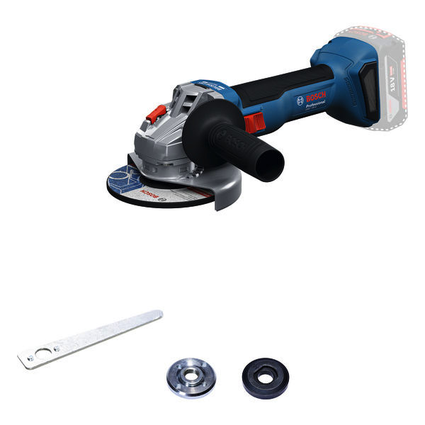 Akku-Winkelschleifer GWS 18V-8, Dieser kompakte und schnelle Winkelschleifer liefert die gleiche Leistung wie ein Kabelgerät mit 800 W, wodurch er eine ideale Kombination aus Komfort und Leistung für leichte Trenn- und Schleifaufgaben bietet. Er bietet die schnellste Trennleistung bei leichten Aufgaben wie dem Schneiden von Armierungseisen, Metallblech, PVC und Fliesen oder beim Entgraten von leichtem Metall. Mit seinen Sicherheitsmerkmalen und dem schlankeren und längeren Griff als beim Vorgänger bietet der Schleifer eine ausgezeichnete Kontrolle und ergonomischen Komfort, um Ermüdung zu minimieren. Dank seiner optimierten Laufzeit lässt er dich mit weniger Akkuladungen mehr Arbeit erledigen und so Zeit sparen Dieser kompakte und gleichzeitig kraftvolle Winkelschleifer bietet die schnellste Trennleistung beim Schneiden von Armierungseisen, Metallblech, PVC und Fliesen sowie beim Entgraten von leichtem Metall Aufnahmeflansch (1 605 703 099). Spannmutter (1 603 345 043). Zweilochschlüssel (1 607 950 043). Zusatzhandgriff (1 602 025 024). Schutzhaube (1 605 510 365)
