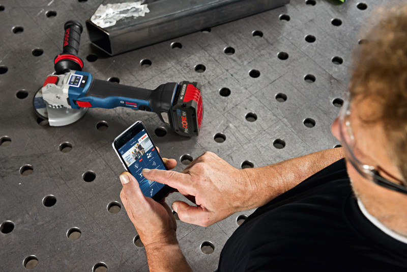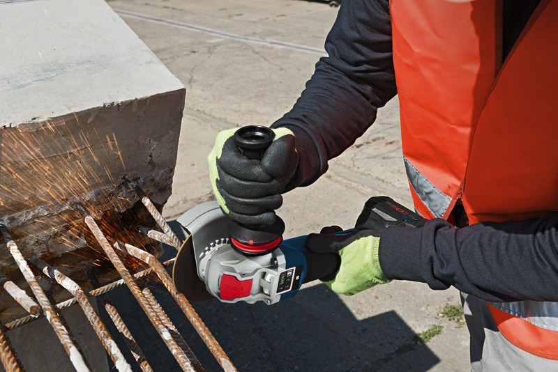 Akku-Winkelschleifer mit X-LOCK GWX 18V-10 SC, Der kleine Akku-Winkelschleifer GWX 18V-10 SC Professional mit X-LOCK bietet verbesserte Leistungsfähigkeit und Werkzeugkontrolle in der 18-Volt-Kategorie. Er bietet dank des leistungsstarken bürstenlosen Motors und der ProCORE18V-Akkutechnologie über den Akku dieselbe Leistung wie ein kabelgebundener Schleifer mit 1.000 Watt. Dieser kleine Winkelschleifer ist mit dem schlüssellosen Klick-System X-LOCK ausgestattet, und ermöglicht damit ein schnelles und bequemes Wechseln der Einsatzwerkzeuge. Sein Bluetooth Connectivity-Modul ermöglicht Anpassungen direkt über die Toolbox App, und ein User Interface mit Drehzahlvorwahl sorgt mit Aktivwerkzeug-Feedback für größtmöglichen Komfort. Das Werkzeug eignet sich zum Schneiden und Abschleifen von Metall, Stein und Beton. Es ist kompatibel mit den Staubabsaugvorrichtungen GDE 125 EA-T Professional und GDE 115 / 125 FC-T Professional sowie mit allen Bosch Professional 18V-Akkus und -Ladegeräten (Professional 18V System). Auch kompatibel mit AMPShare, der markenübergreifenden Akku-Allianz. Der GWX 18V-10 SC Professional verfügt zudem über Bluetooth Connectivity und User Interface sowie Drop Control, X-Brake und KickBack Control. Schutzhaube (1 605 510 365). Anklippbare Trennschutzhaube aus Kunststoff (2 608 000 757). Zusatzhandgriff Vibration Control (2 602 025 171). L-BOXX 136 (1 600 A01 2G0). 1/1 L-BOXX-Einlage für Gerät und Ladegerät (1 600 A01 166)