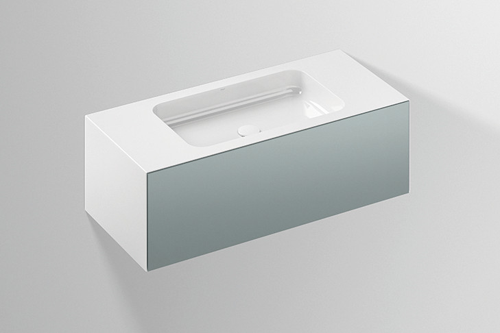 Alape Waschplatz Folio 4 1004 x 350 x 450 mm, Lack seidenmatt Fossilgrau, ohne Hahnloch und Überlauf