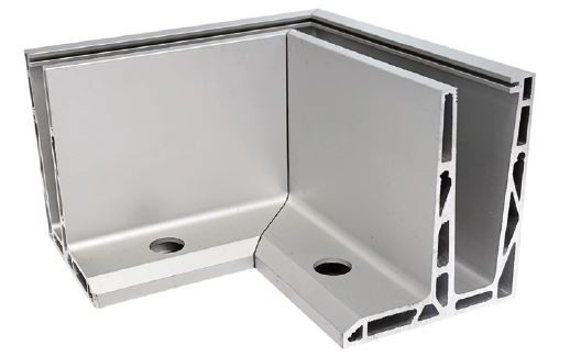 Aluprofil Ganzglasgeländer, F-Profil Boden-Montage, Alu eloxiert, Ecke Außen 196 x 196 mm, Glasstärke 17,52/21,52 mm