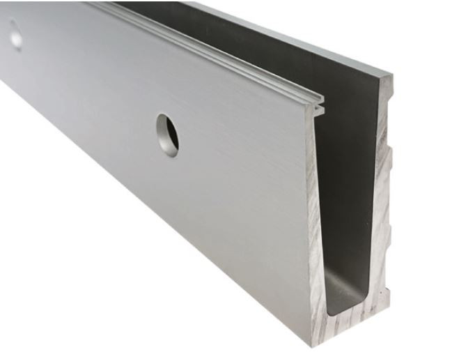 Aluprofil Ganzglasgeländer, U-Profil Seiten-Montage, Alu eloxiert, L=2500 mm 48,3 x 120,4 mm,Glasstärke 17,52/21,52mm