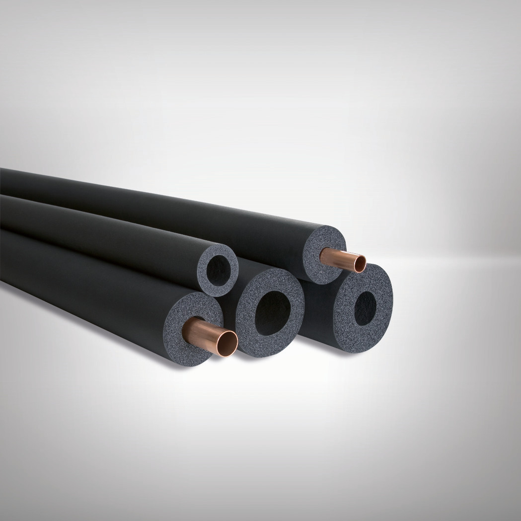 hochflexibles, geschlossenzelliges Dämmmaterial mit hohem Wasserdampf-Diffusionswiderstand, niedriger Wärmeleitfähigkeit und integriertem antimikrobiellem Schutz durch Microban, Elastomerschaum auf Basis synthetischen Kautschuks, werkmäßig hergestellter flexibler Elastomerschaum (FEF) gem. EN 14304, Selbstklebebeschichtung Haftkleber-Beschichtung auf modifizierter Acrylat-Basis mit Gitternetzstruktur und einer Abdeckung aus Polyethylen-Folie, Schutzfolie der Klebeschicht von selbstklebenden Produkten kann Spuren von Silikon enthalten, zur Dämmung und zum Schutz von Rohren, Luftkanälen und Behältern (mit Rohrbogen, Armaturen, Flanschen) in Kälte- und Klimaanlagen sowie verfahrenstechnischen Anlagen, zur Tauwasserverhinderung und Energieeinsparung, Körperschall-Reduzierung in Brauchwasser- und Abwasseranlagen