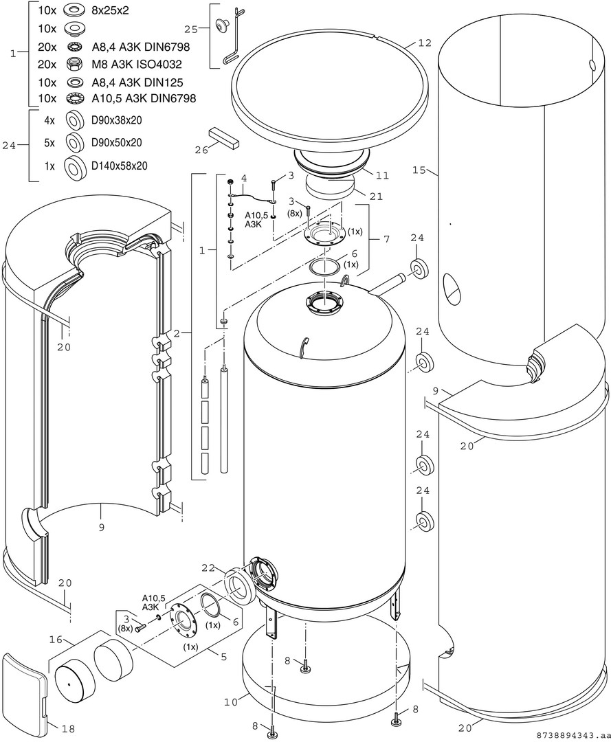 mit druckfestem, emailliertem Stahlbehälter und einer Heizschlange, Hartschaum-Isolierung mit silbernem Folienmantel, 500 l Speicher eingeschäumt mit zusätzlicher 40 mm Vliesisolierung, 750/1000 l Speicher-Anlieferung erfolgt auf einer Palette-Hartschaum-Schalen können zur Montage abgenommen werden, Service durch groß dimensionierte Inspektionsöffnungen oben und vorne