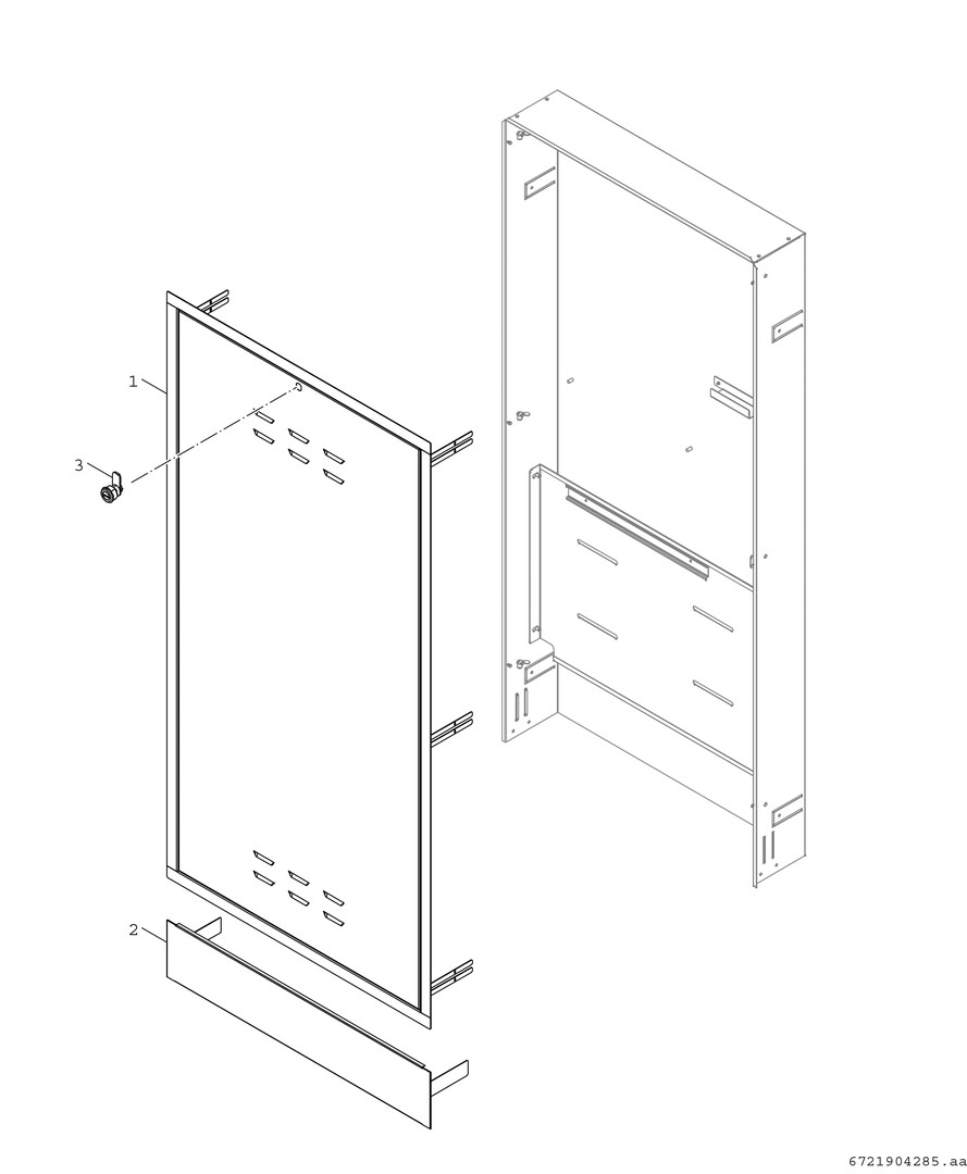 zur Installation der Wohnungsstationen F7001 35 S in einer Wand, Material Blech, weiß lackiert, definierte Halterung für das Basismodul, Trinkwassermodul, Heizkreismodul, Heizkreisverteiler und Klemmleiste, 1540 x 710 x 150-200 mm, RAL 9016