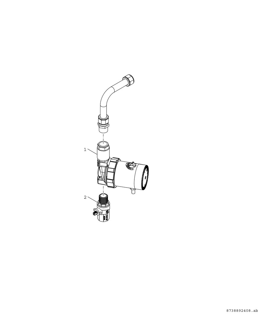 fertig verrohrter Zirkulationsstrang mit Hocheffizienzpumpe, Rückschlagklappe und Absperrventil zum Einbau in eine Einzelstation FF 27/40, nicht bei Kaskade einbaubar