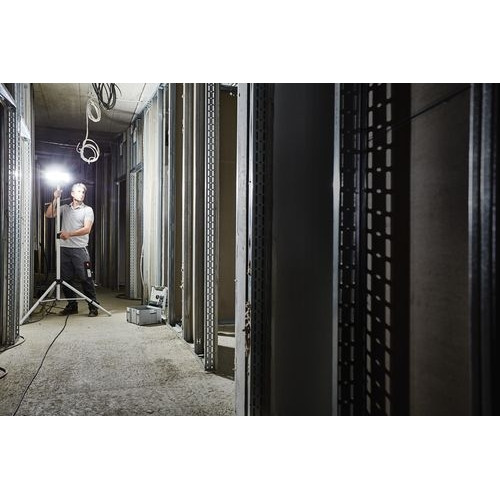 Eine neue Generation Licht: Leuchtet flächig aus, statt nur punktuell hell zu machen. Mit einzigartiger LED-Anordnung für 180° Streuwinkel. Für homogene Ausleuchtung mit tageslichtähnlicher Lichtfarbe. Mit dem stabilen Stativ auf bis zu 2,00 m Höhe ausgezogen einsetzbar. Äußerst robust und langlebig mit 10.000 Stunden Leuchtdauer (L70), stoßfesten Ecken und sicher im Systainer verpackt. Einhandgriff, Aufhängemöglichkeit und Kabelaufwicklung? Selbstverständlich! Die neue SYSLITE DUO. Das Licht zum Werkzeug.