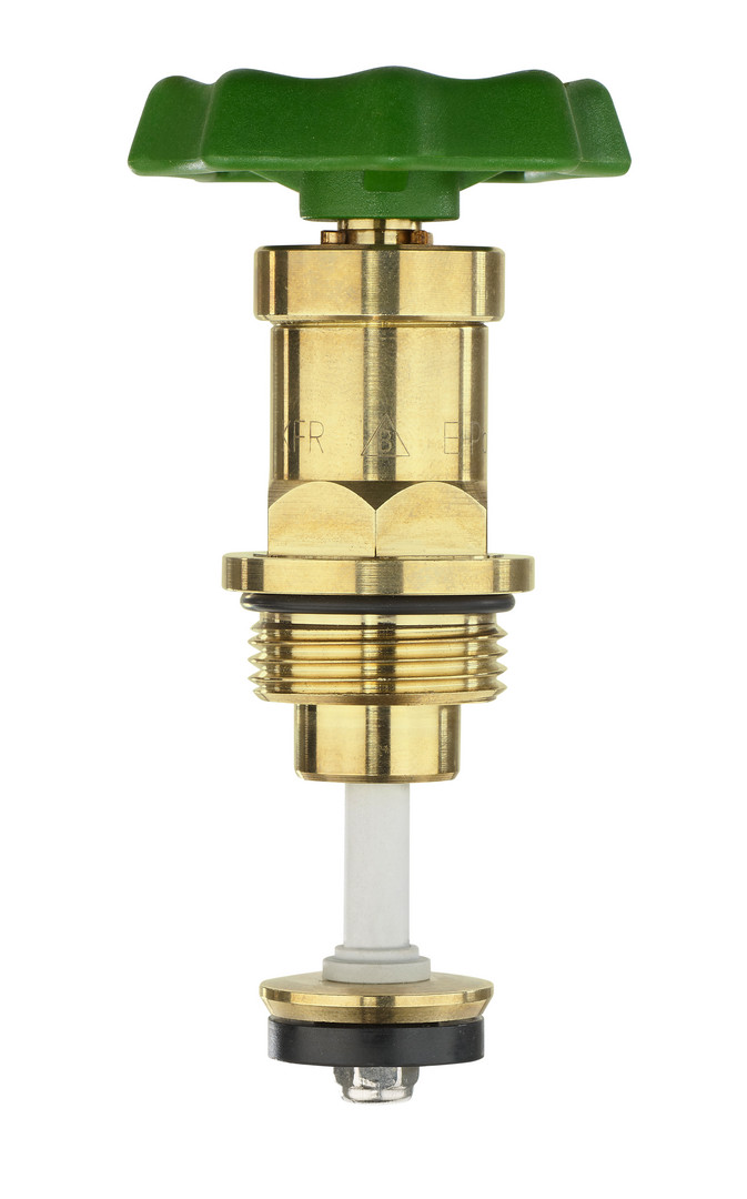 long-life Fettkammeroberteil Cuphin für KFR-Ventile nach DIN EN 13959, Werkstoff nach DIN 50930 Teil 6 bzw. aktuell gültiger UBA Liste sowie entzinkungsbeständig nach ISO 6509, totraumfrei, innenliegende Rückschlagfeder, mit nichtsteigender Spindel sowie SOFT-Antriebssystem
