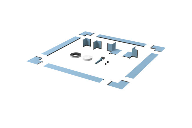 dicht und schnittfest, Schnittschutz aus flexiblen, dünnen Gewebe, Verklebung in Ecken ohne Quetschfalten, für Badewanne und Duschwanne, mit Dichtvlies, vorkonfektionierte Ecken, schnittfestes Band, Entkopplungsband, Fliesentrennstreifen, Andruckrolle, für normgerechte Wandabdichtung gemäß DIN 18534-1