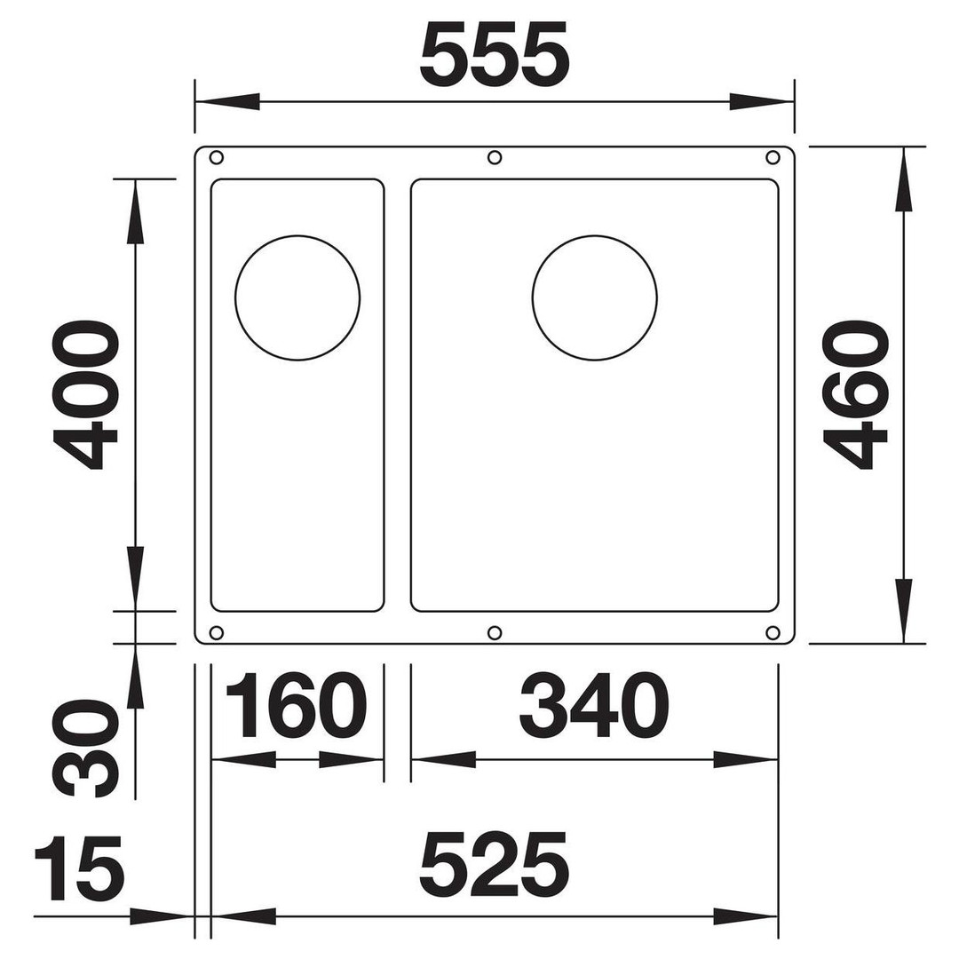 Blanco Becken SUBLINE 340/160-U SILGRANIT 55,5 x 46 cm, felsgrau, Hauptbecken rechts