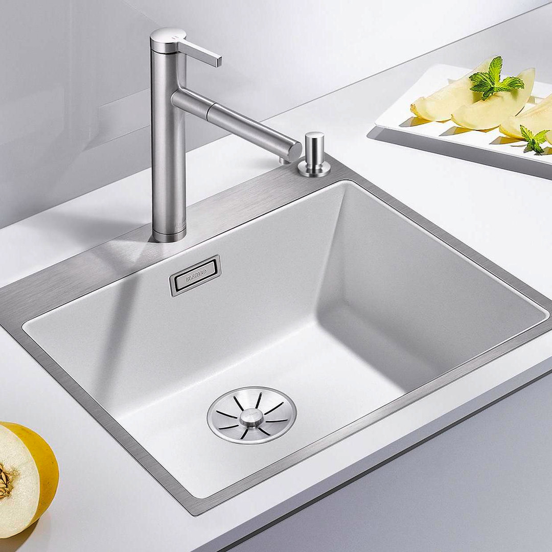 Blanco Becken SUBLINE 500-IF/ASteelFrame SILGRANIT 54,3 x 51 cm, weiß, mit Ablauffernbedienung mit Zugknopf
