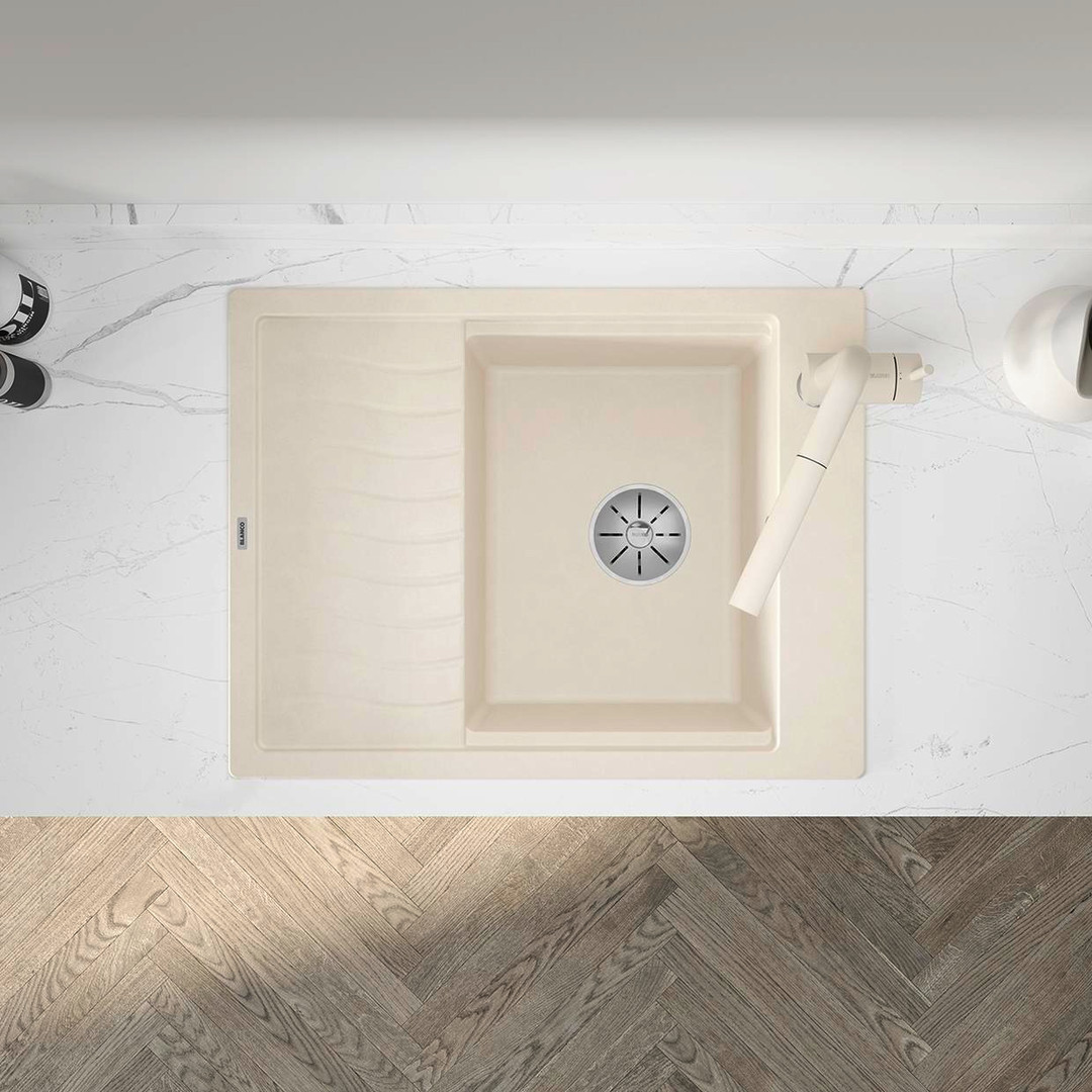 Blanco Spüle ELON 45 S SILGRANIT 65 x 50 cm, softweiß, reversibel, mit Ablauffernbedienung/Zubehör