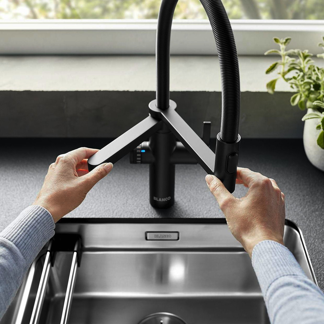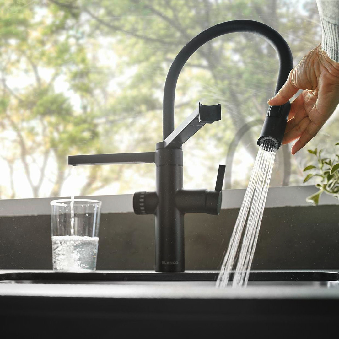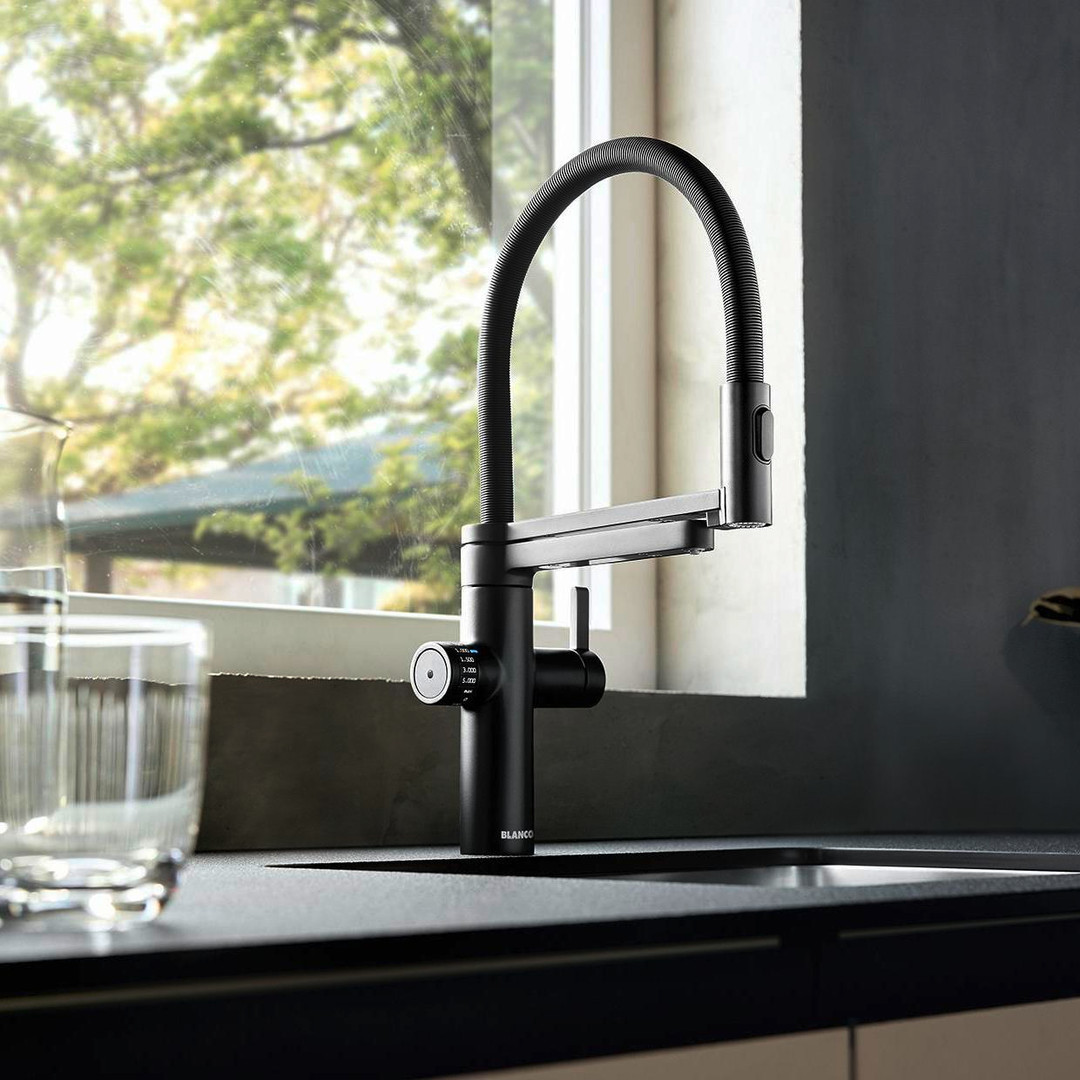 Blanco Spültisch-Einhebelmischer DRINK.FILTER EVOL-S PRO HD, 3-in-1 Semi-Profi-Armatur, schwarz matt (Sonderfarbe)